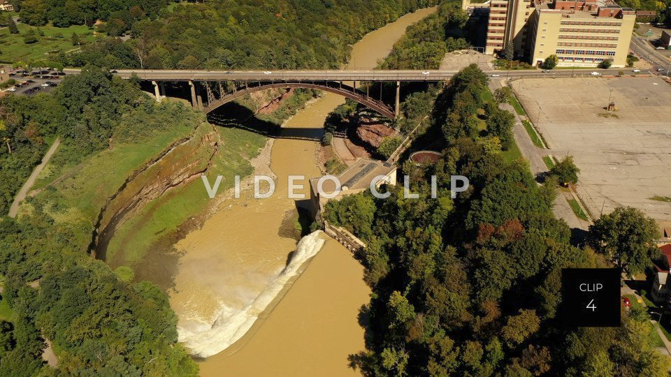 CLIP 6 - Rochester, NY beautiful view of Lower Falls and arched street bridge on Genesee River