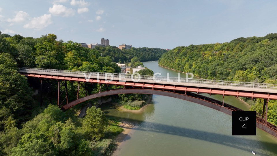 CLIP 14 - Rochester, NY Veterans Memorial Bridge with view of Genesee Riverway Trail bridge