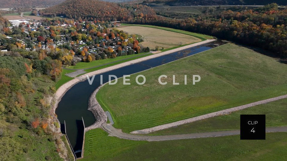 CLIP 4 - Tioga Dam and Reservoir, PA flying over canal from earthen dam