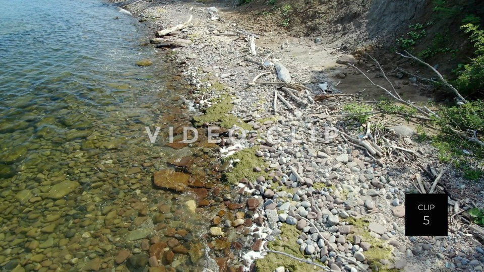 CLIP 5 - Lake Ontario Webster, NY close up of shoreline with driftwood and rocks