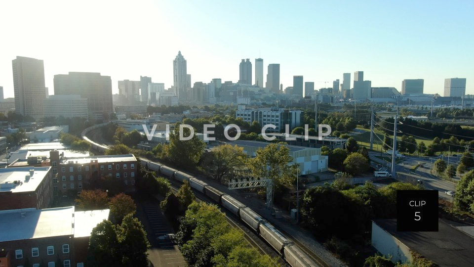 CLIP 5 - Atlanta, GA morning in the city with railroad tracks and skyline