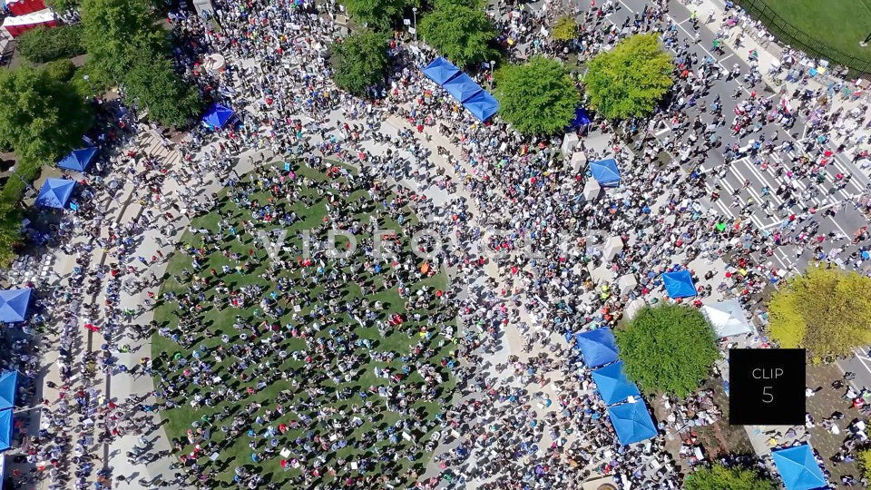 CLIP 5 - Atlanta, GA No Kings Protest - Looking down on crowd gathering in front of Georgia State Capitol