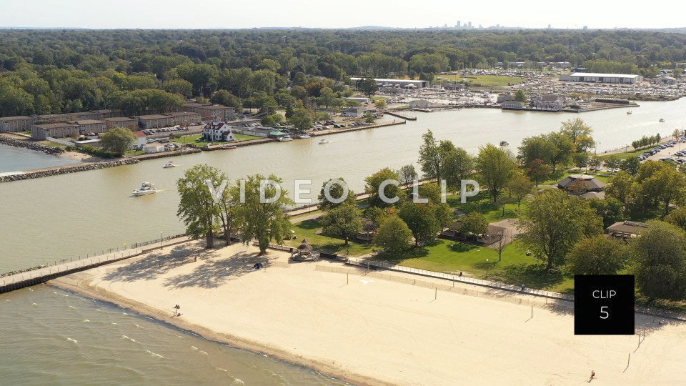 CLIP 3 - Aerial of Ontario Beach Park and Genesee river at Charlotte Pier Rochester, NY