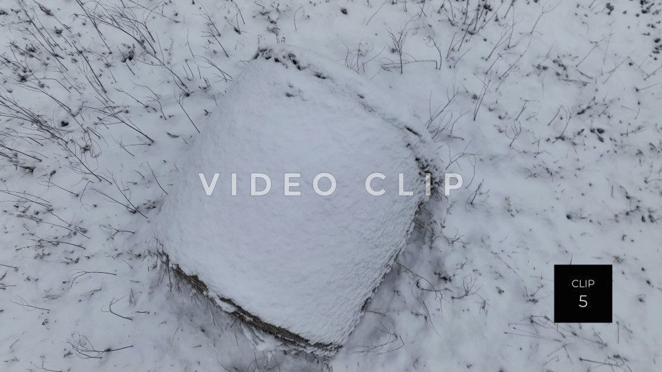 CLIP 5 - Looking down on snow covered hay bale in pasture during Winter
