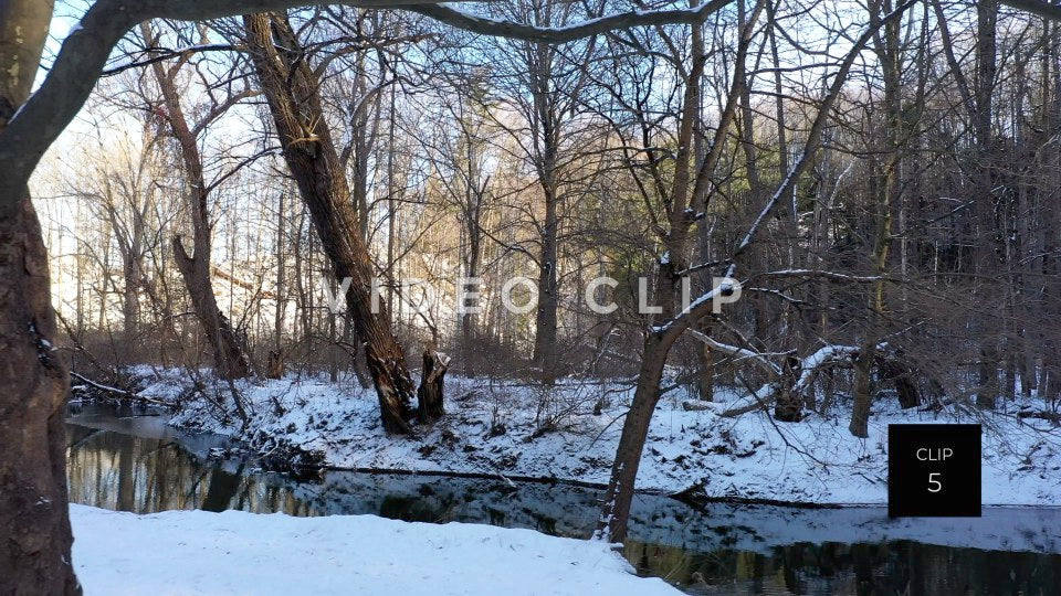 CLIP 4 - Winter snow in Ellison Park, NY with reflections in Irondequoit creek