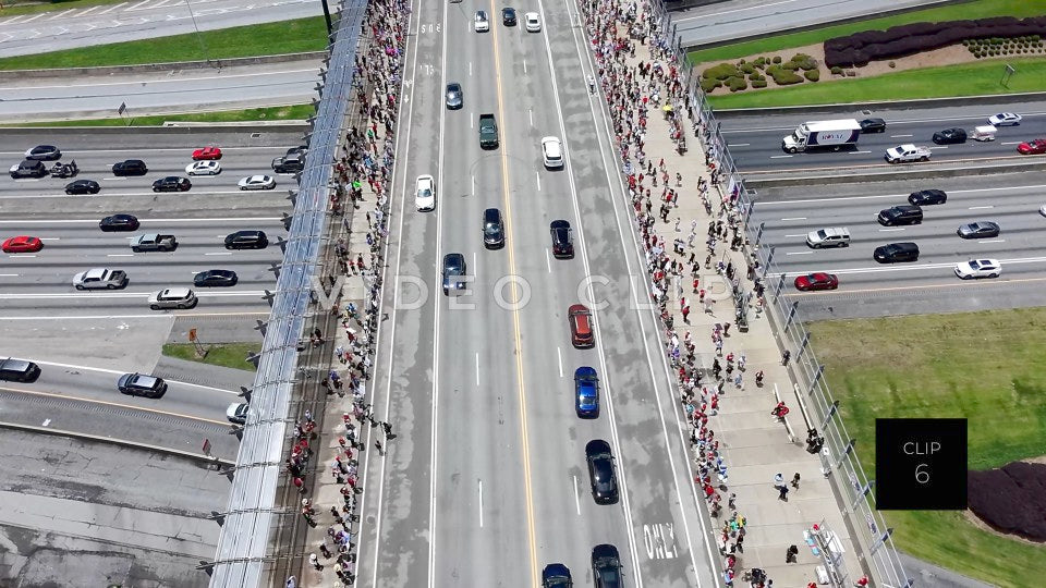 CLIP 6 - Atlanta, GA No Kings Protest - Flight above highway overpass with protesters below