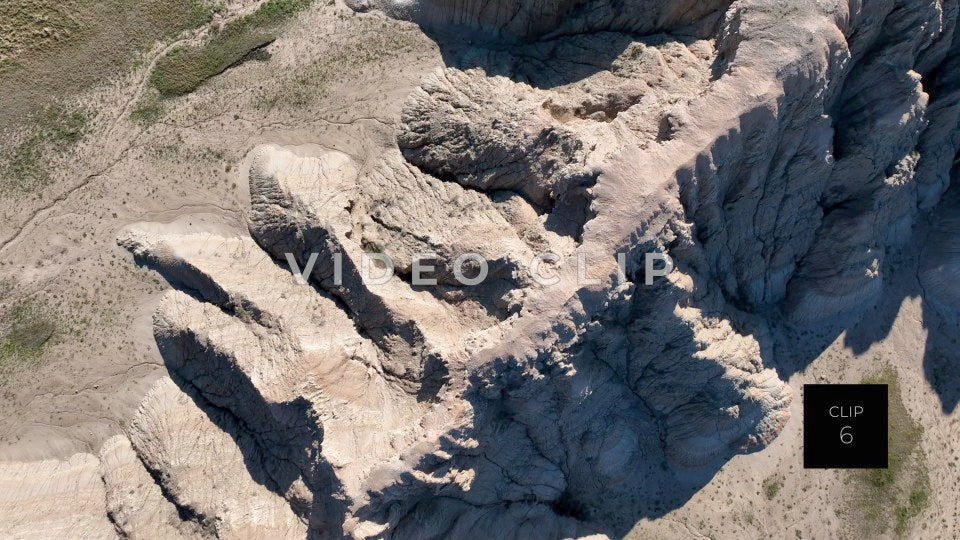 CLIP 6 - Badlands, SD flying over top of Butte while looking down on formations