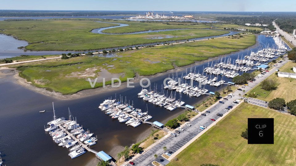 CLIP 7 - Brunswick, GA drone flight over inlet with marina and wetlands