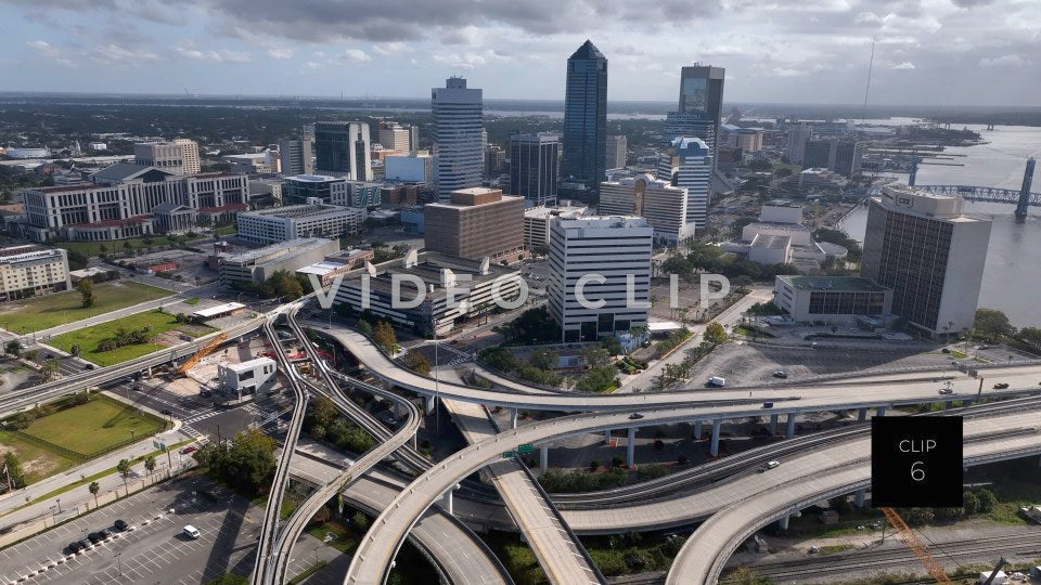CLIP 6 - Jacksonville, FL city skyline downtown aerial view of streets and business