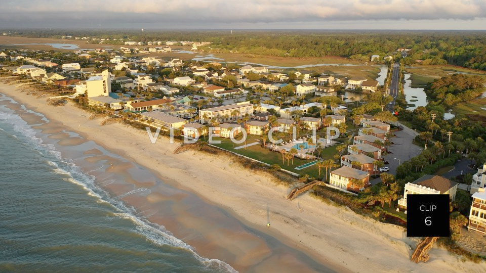 CLIP 10 - Litchfield Beach, SC beach front homes cast in golden morning light