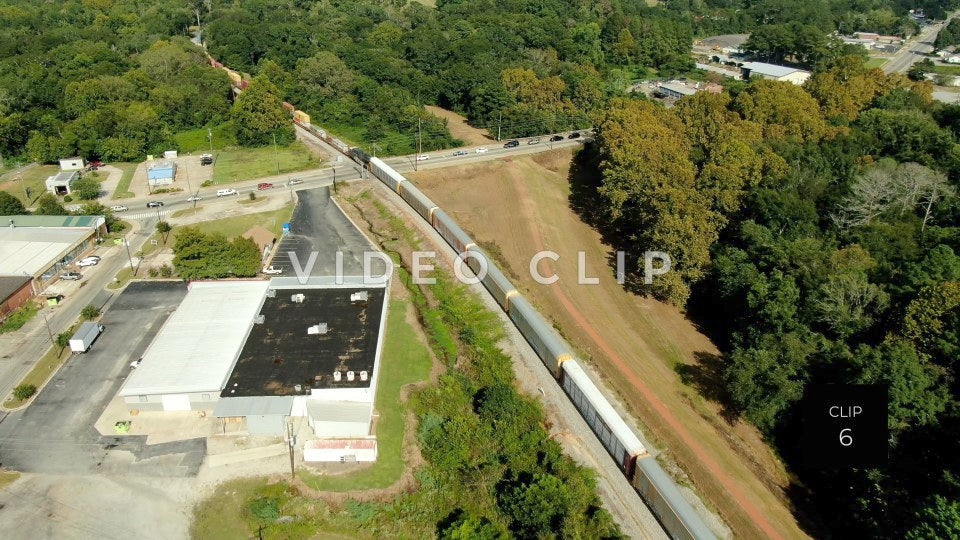 CLIP 6 - Montezuma, GA aerial of train traveling through town