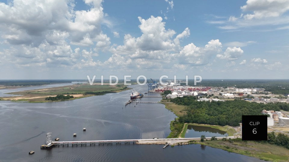 CLIP 6 - Wilmington, NC Port of Wilmington with cargo ship docked on Cape Fear River