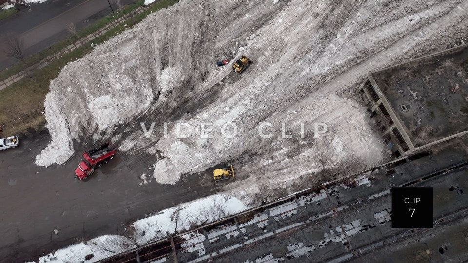CLIP 7 - Buffalo, NY city workers deposit snow from streets beside abandoned building