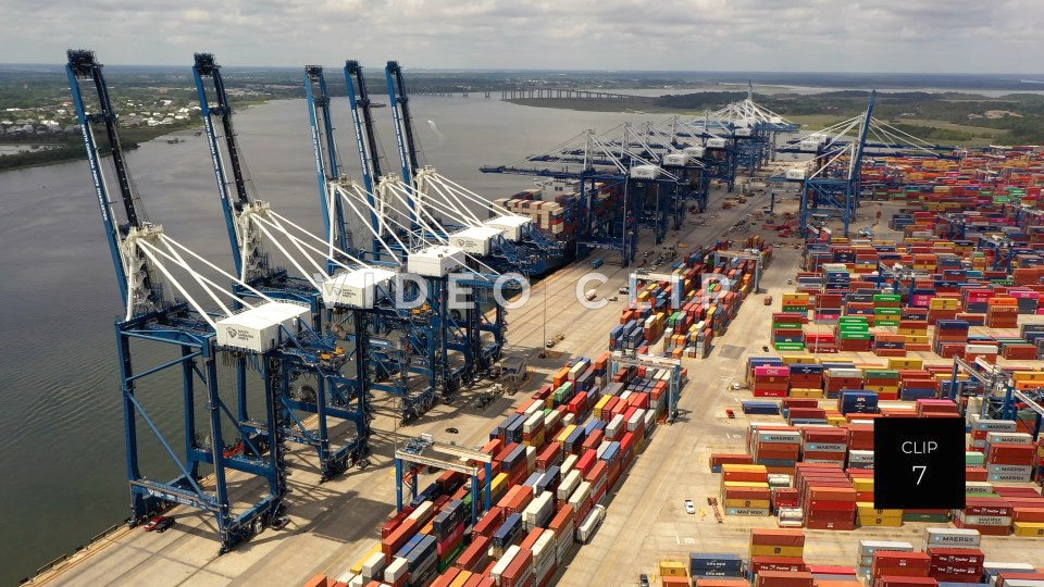 CLIP 8 - Charleston, SC aerial view of Port of Charleston with cargo ships and containers