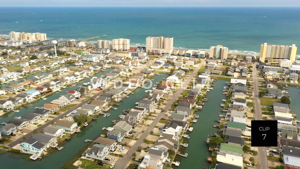 CLIP 5 - Cherry Grove Beach, SC flying over vacation beach houses and homes by the tidal marsh