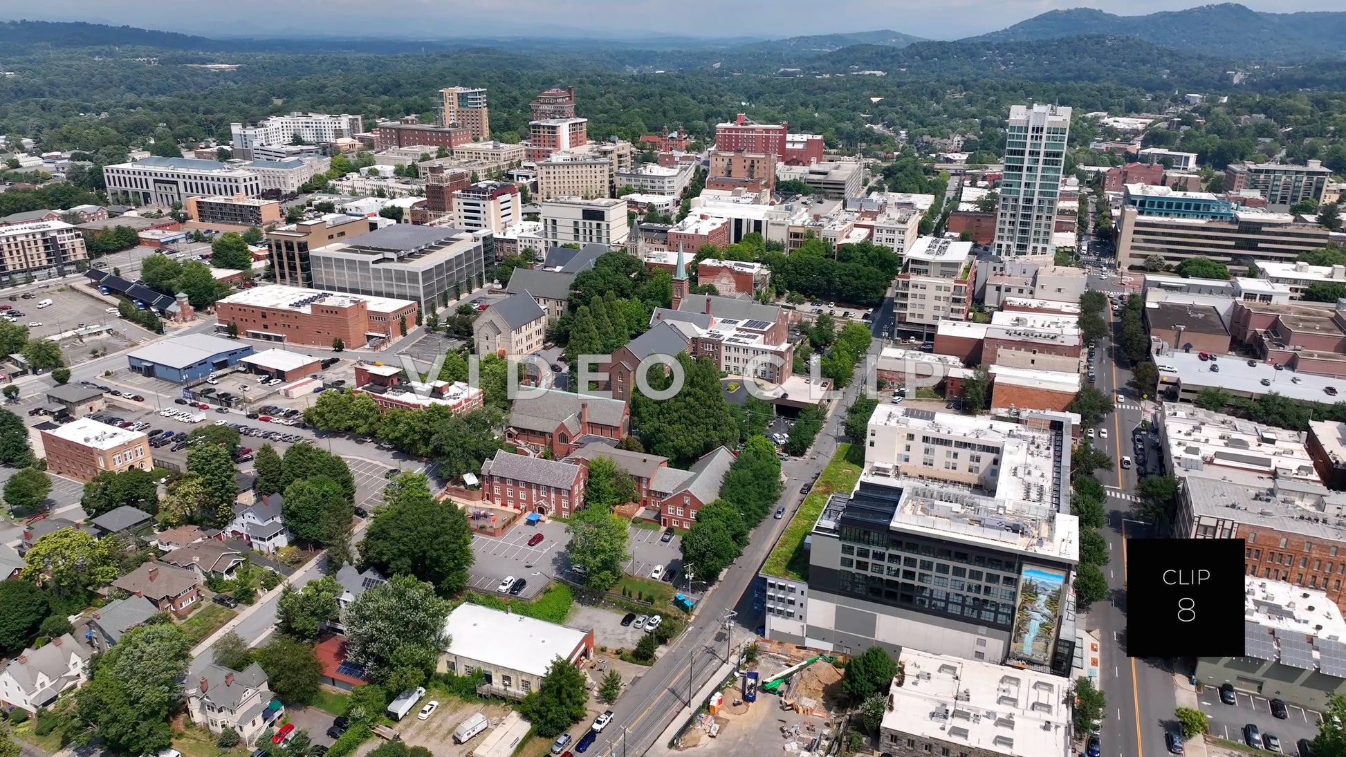 CLIP 9 - Asheville, NC looking down as drone flies over downtown
