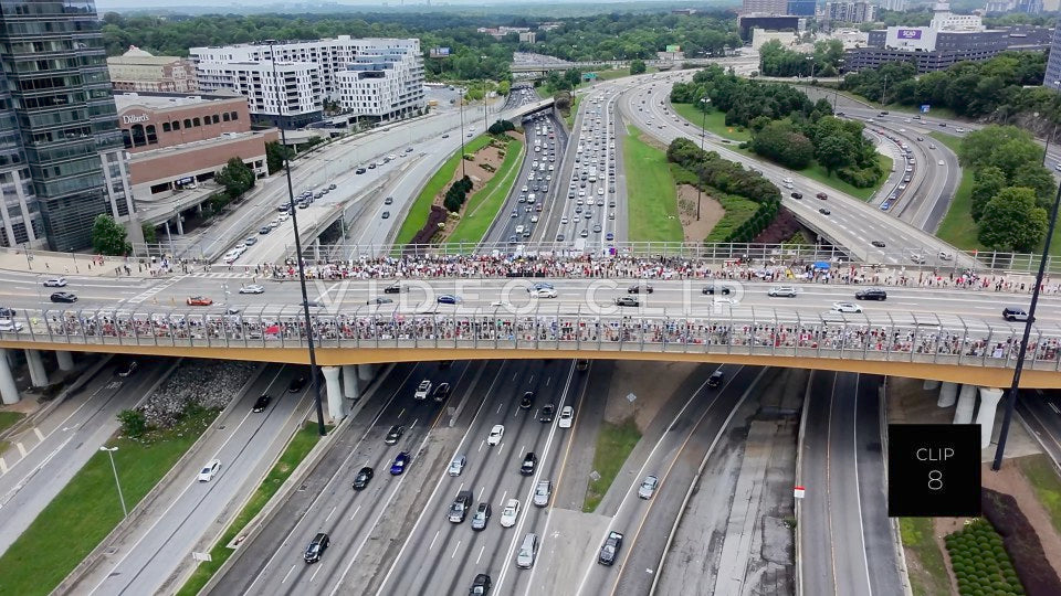 CLIP 6 - Atlanta, GA No Kings Protest - Flight above highway overpass with protesters below