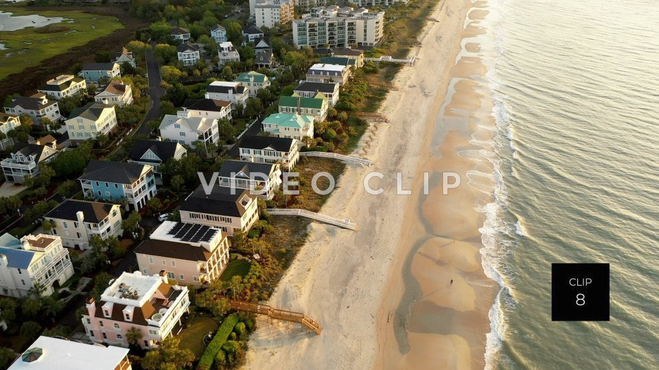 CLIP 10 - Litchfield Beach, SC beach front homes cast in golden morning light