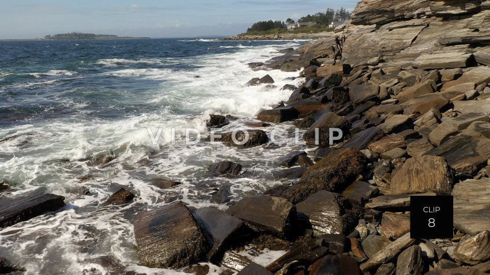 CLIP 6 - Maine Coast rising up over rocky shoreline with ocean waves