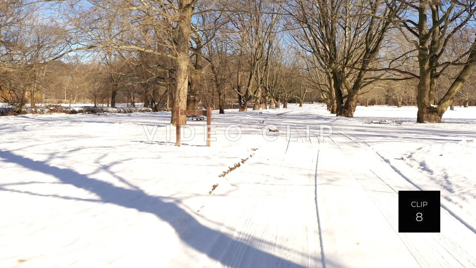 CLIP 9 - Person riding bike around trees in Winter at Ellison Park, NY