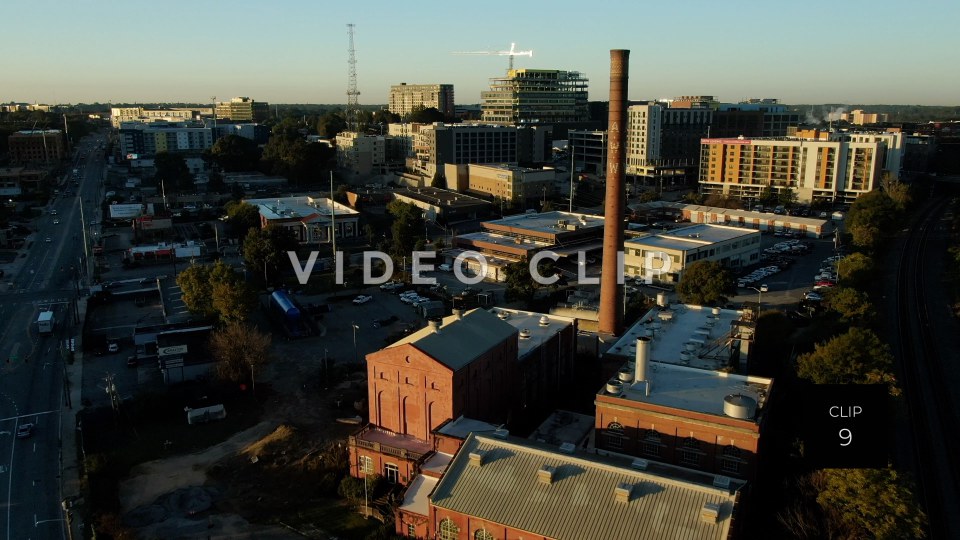 CLIP 9 - Atlanta, GA old water works building and stack in morning sunlight