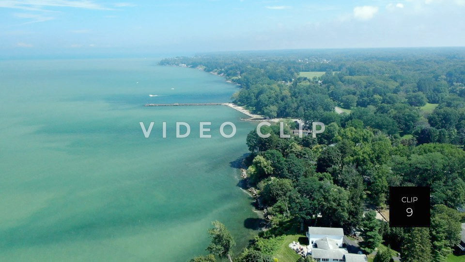 CLIP 9 - Lake Ontario Webster, NY aerial of coastline with trees and houses