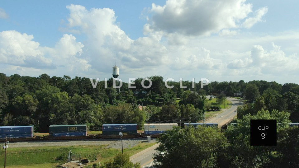 CLIP 6 - Montezuma, GA aerial of train traveling through town
