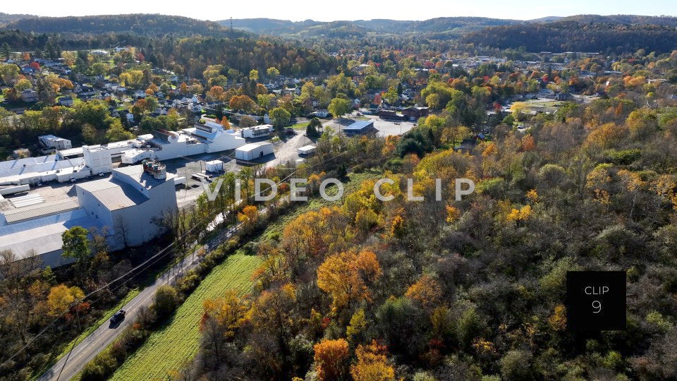 CLIP 13 - Wellsboro, PA flying over green field towards downtown