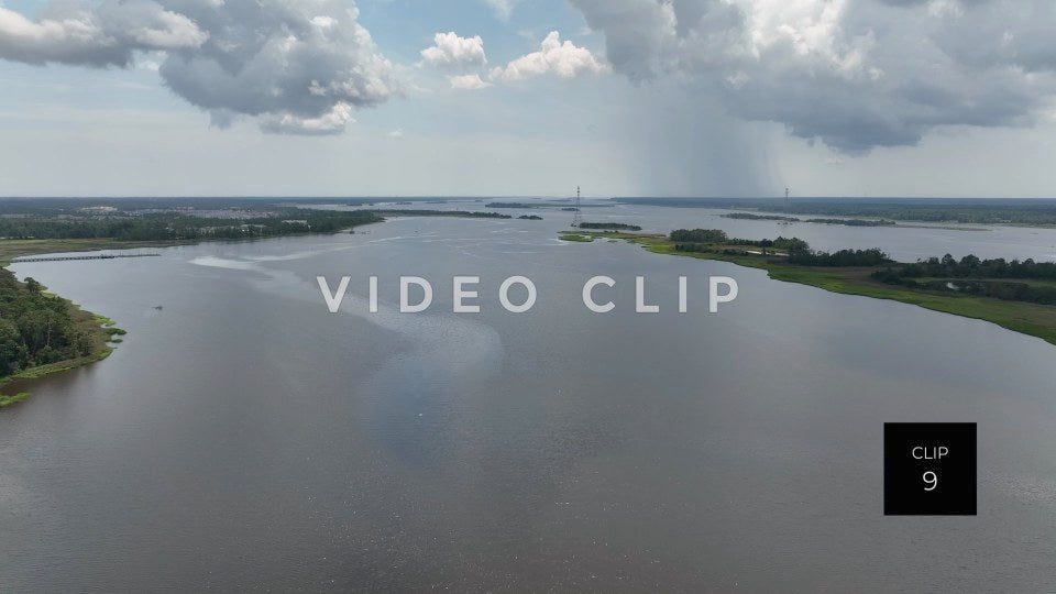 CLIP 9 - Wilmington, NC landscape with Cape Fear River and rain falling on horizon