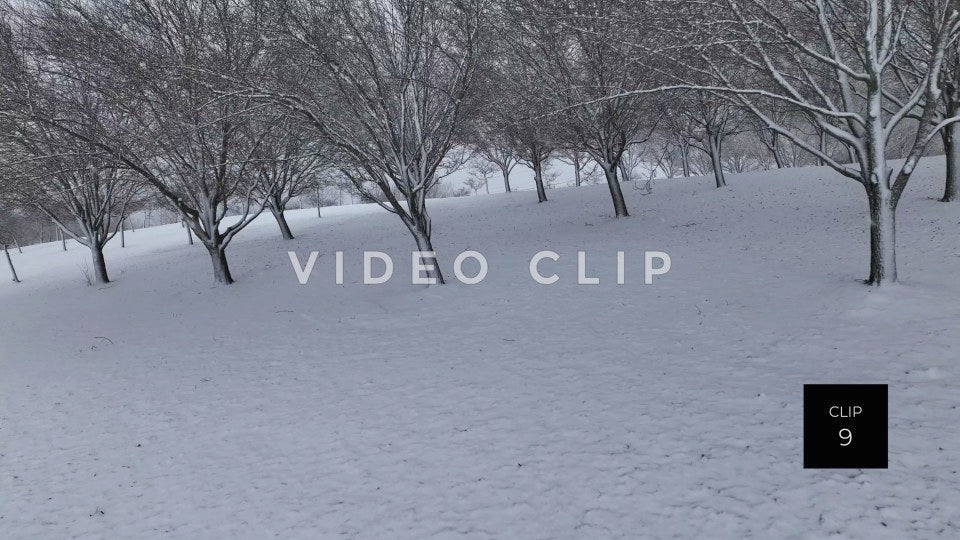 CLIP 19 - Tree orchard in Winter with snow falling