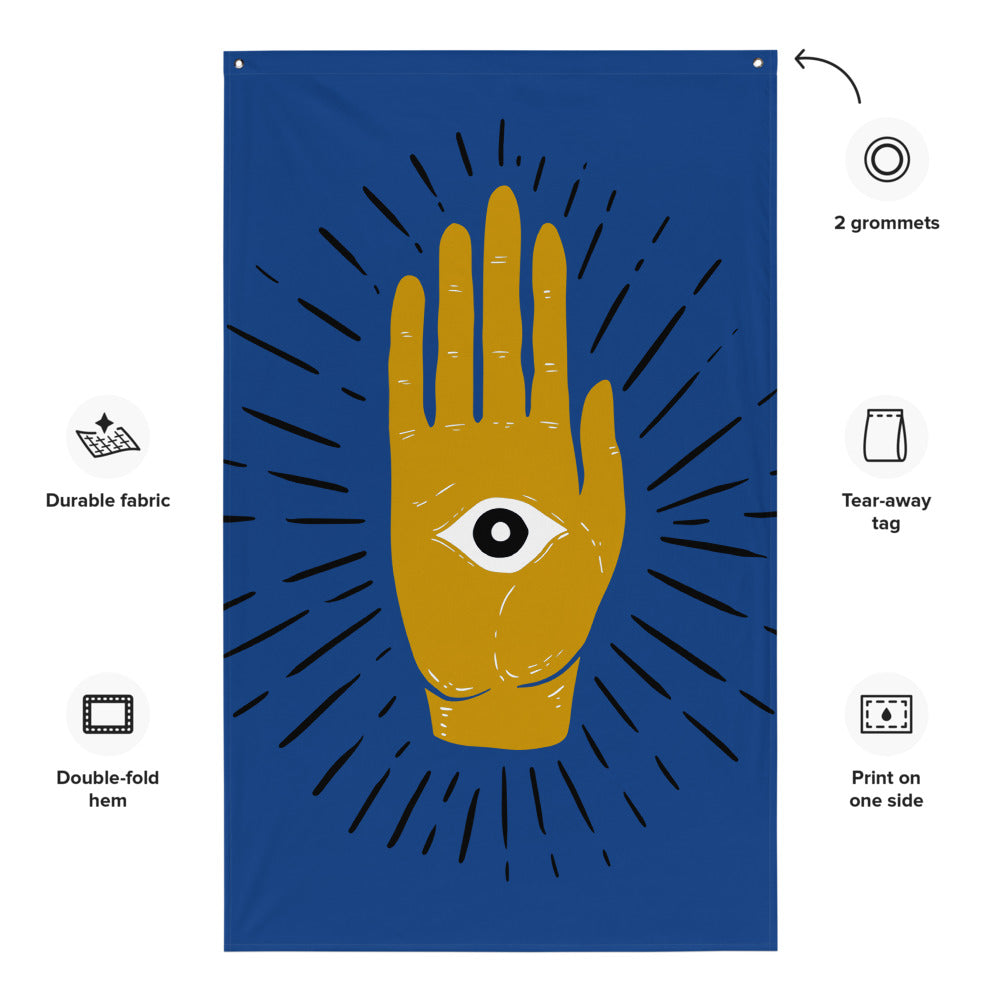 As a content creator, your workspace is your sanctuary, and this cloth wall hanging with its intricate Hansa Hand graphic is a beacon of encouragement and artistic energy. Hang it in your creative space to invite positive energies that fuel your imagination during the creative process.