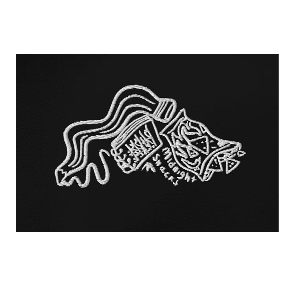 Calling all night owls! Creative cooking can be messy so here's an apron we designed called Midnight Snacks that celebrates your late-night bursts of culinary inspiration. This stylish apron displays an embroidered illustration of a pencil, notebook, and nachos!