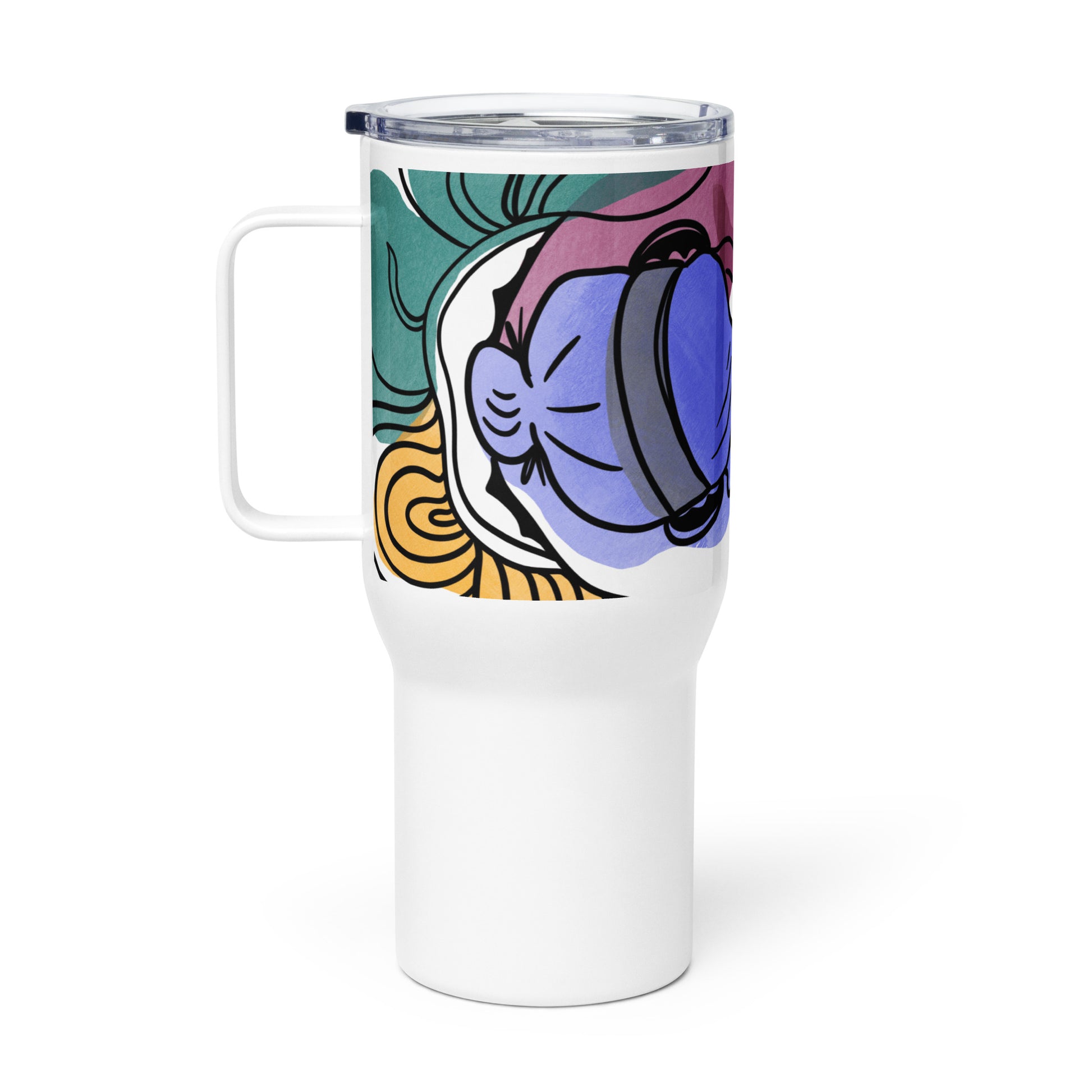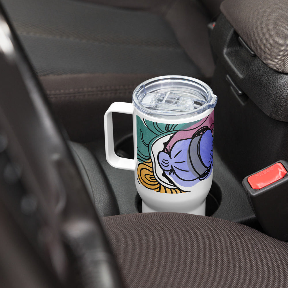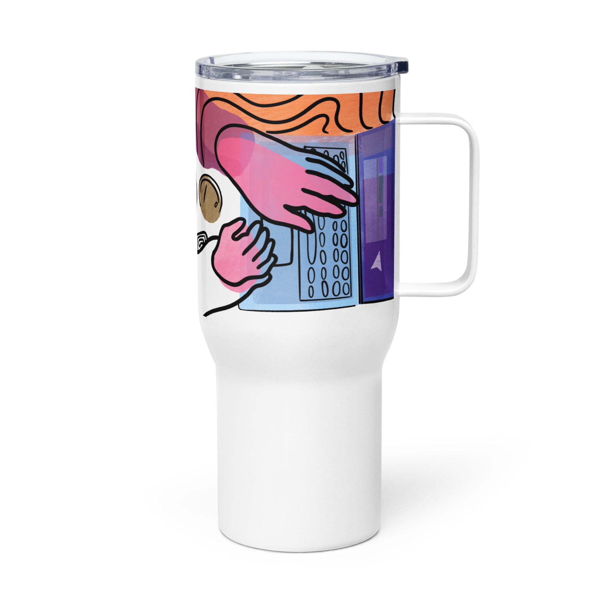 With the Remote Worker Travel Mug in hand, you're ready to unleash your creativity and make your mark on the world, no matter where your adventures take you. Adorned with a colorful graphic illustration of a person immersed in their craft, this mug embodies the essence of creative autonomy and productivity on the go.