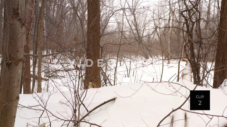 CLIP 11 - Fallen tree over creek during Winter with snow