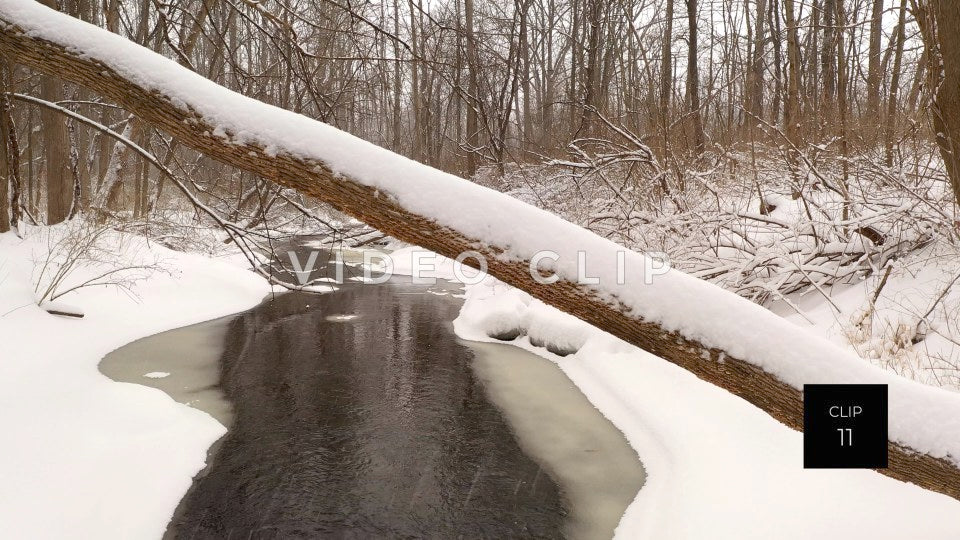 CLIP 11 - Fallen tree over creek during Winter with snow