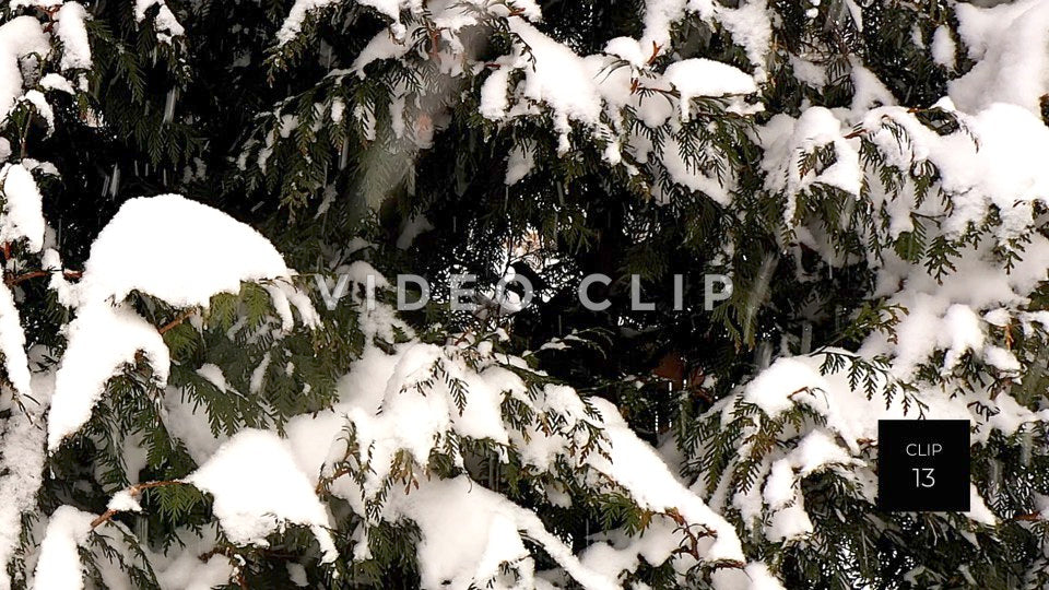 CLIP 14 - Snow covered tree during Winter as bird lands on branch
