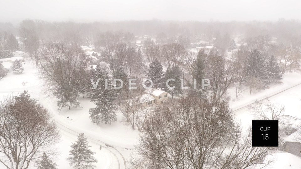 CLIP 16 - Winter snow storm covers small town neighborhood