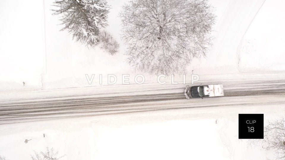 CLIP 17 - Homes and street in Winter snow as car passes by