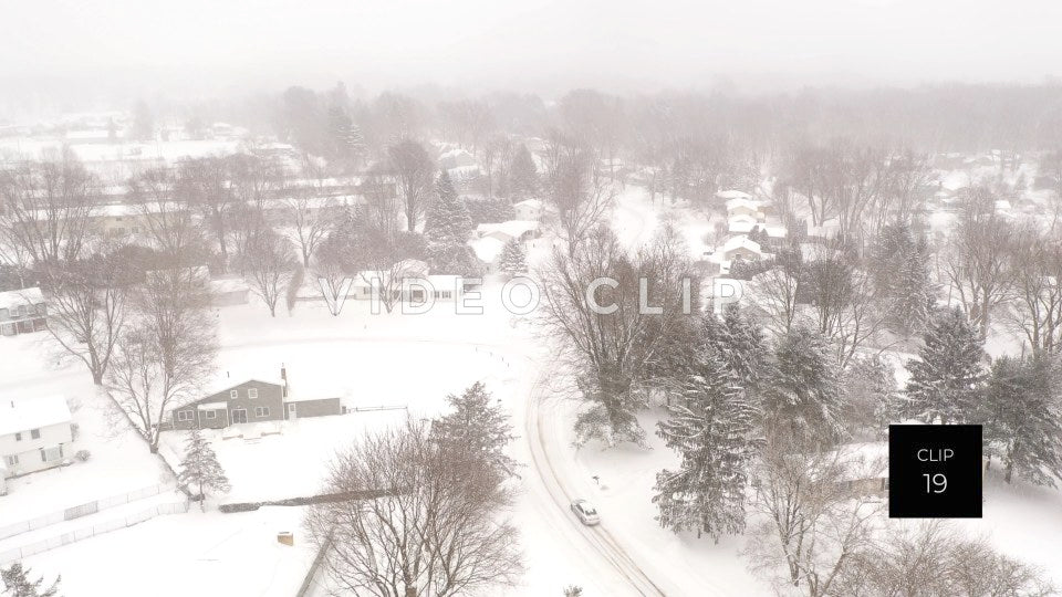 CLIP 16 - Winter snow storm covers small town neighborhood