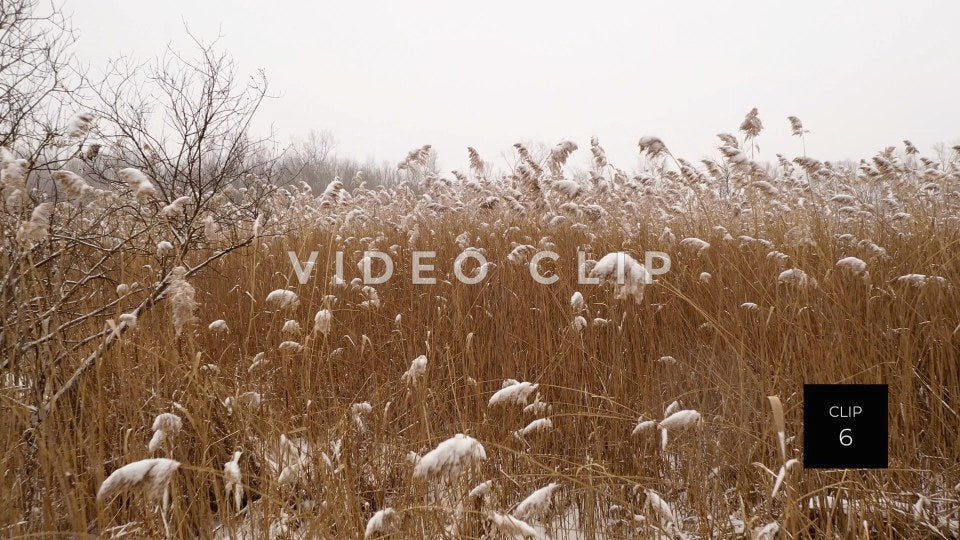 CLIP 6 - Winter ice and snow on wetland marsh reeds in nature area
