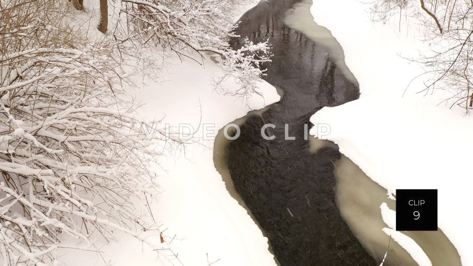 CLIP 9 - Winter snow beside beautiful creek with ice