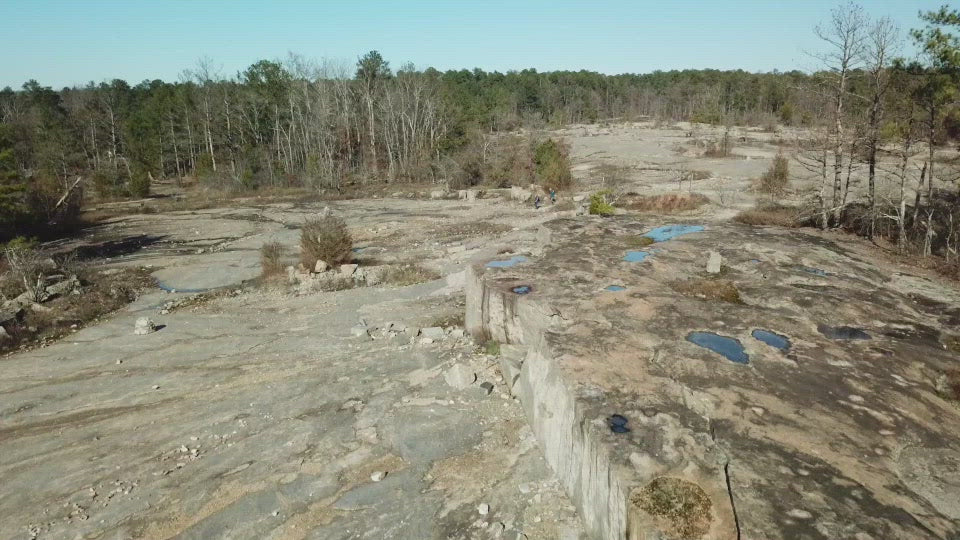 Video - Two hikers walking through quarry ruins in Arabia Mountain Park in Georgia