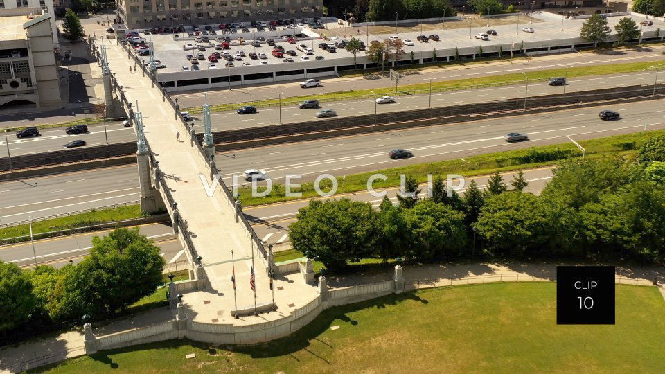 CLIP 10 - Albany, NY people walkway over highway to riverside park on the Hudson river