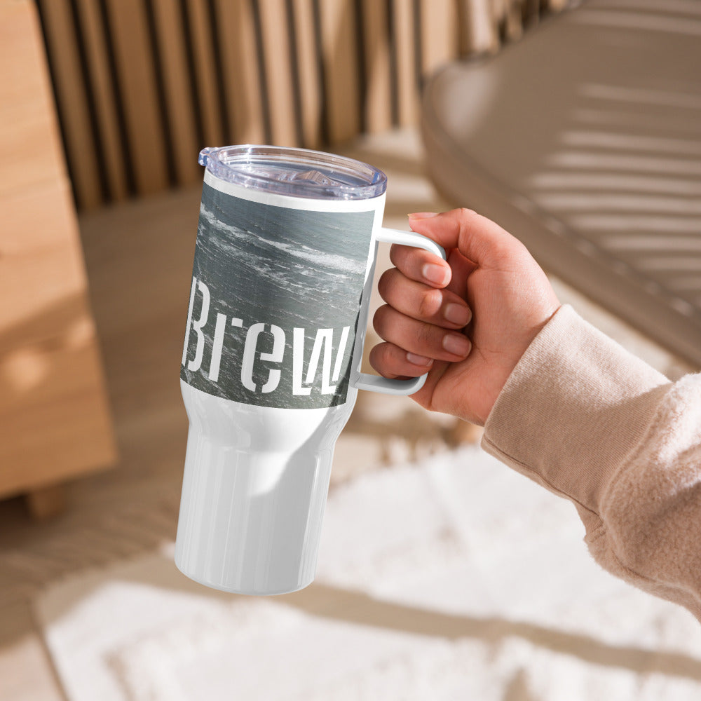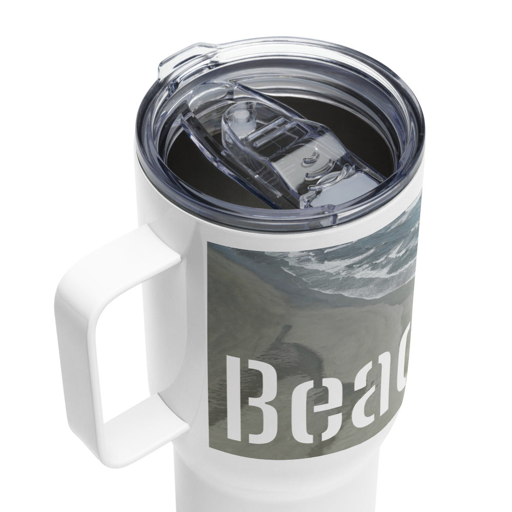 Relax at the beach and let creativity flow with every sip from this inspiring mug! Pour in your favorite brew, feel the sea breeze and unwind to the sound of soothing waves. This travel mug with a wrap around photo is perfect for those moments of artistic bliss at the beach. It fits into most car cup holders and has a spill-proof plastic lid.