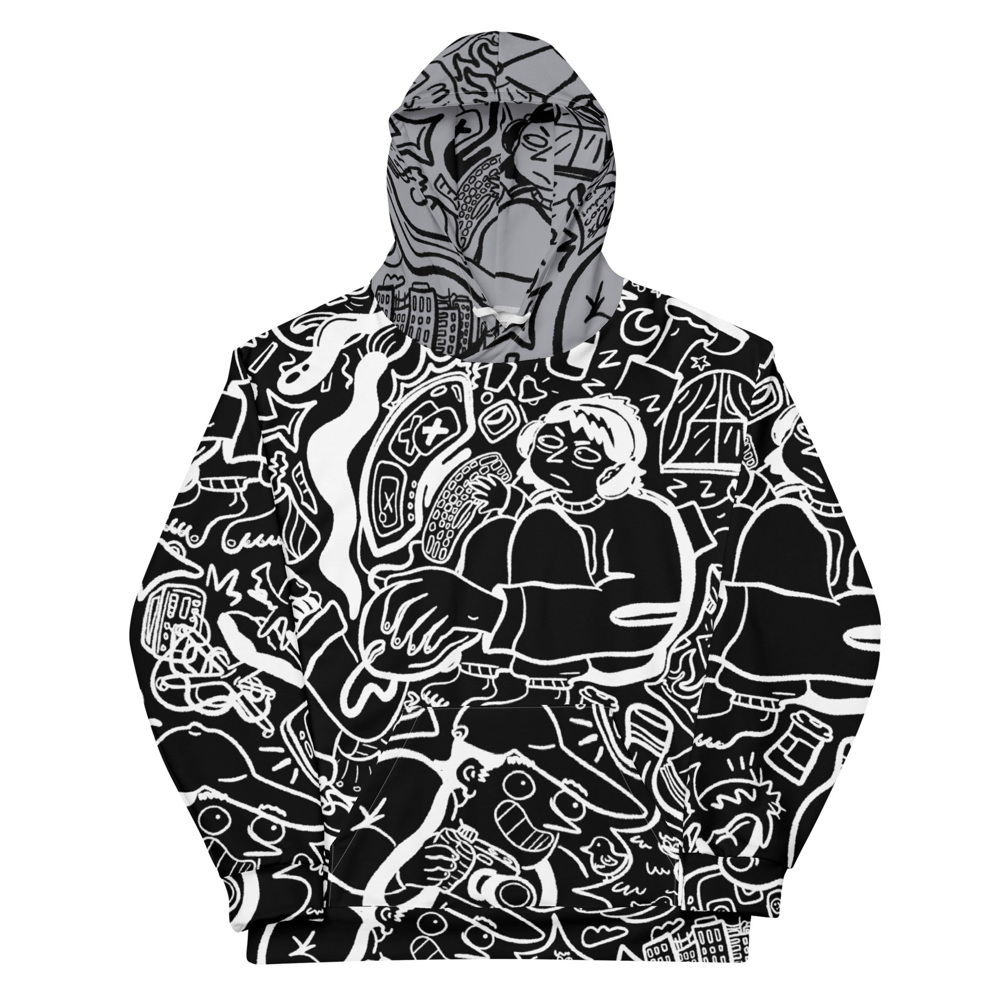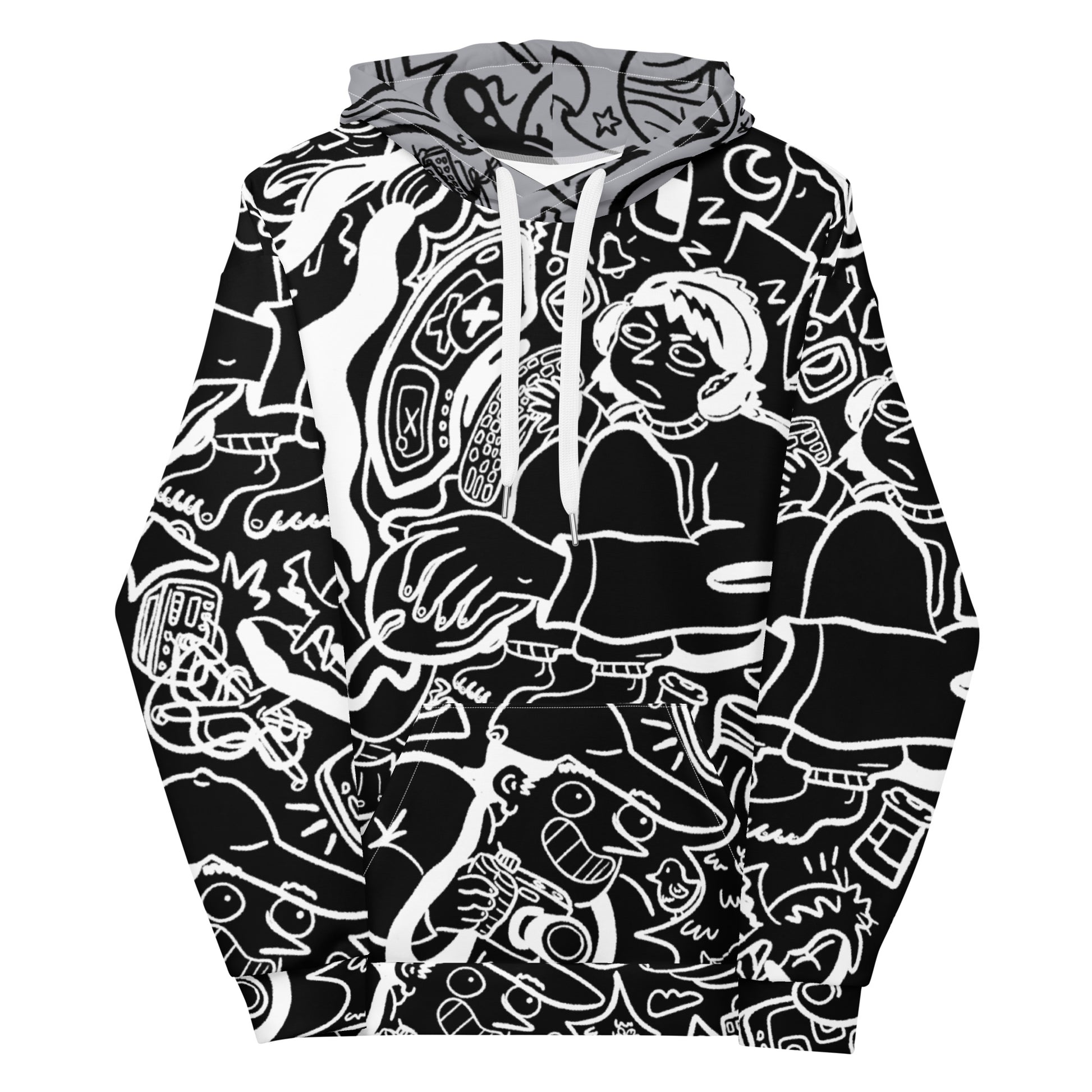 Introducing the Crunch Time Unisex Double-Lined Hoodie. This hoodie features an all-over graphic design depicting content developers deep in the throes of a deadline, capturing the essence of hard work and dedication. Made with comfort and style in mind, this hoodie is perfect for staying cozy during those late-night brainstorming sessions. Gear up, stay focused, and embrace the crunch time with this unique and inspiring hoodie.