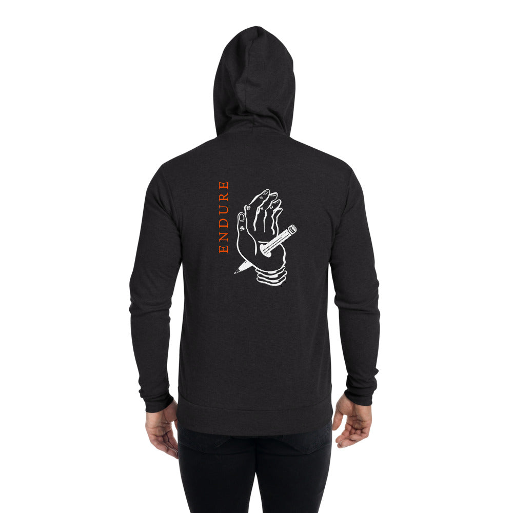For the creative soul pursuing their passion with unwavering dedication and perseverance, let this stylish Unisex zip hoodie be a powerful reminder to never give up no matter how challenging the journey may be. Stay warm, stay inspired, and keep pushing forward on your creative path with our Endure Unisex zip hoodie with a modern fit, hood, front zip, and a kangaroo pocket.